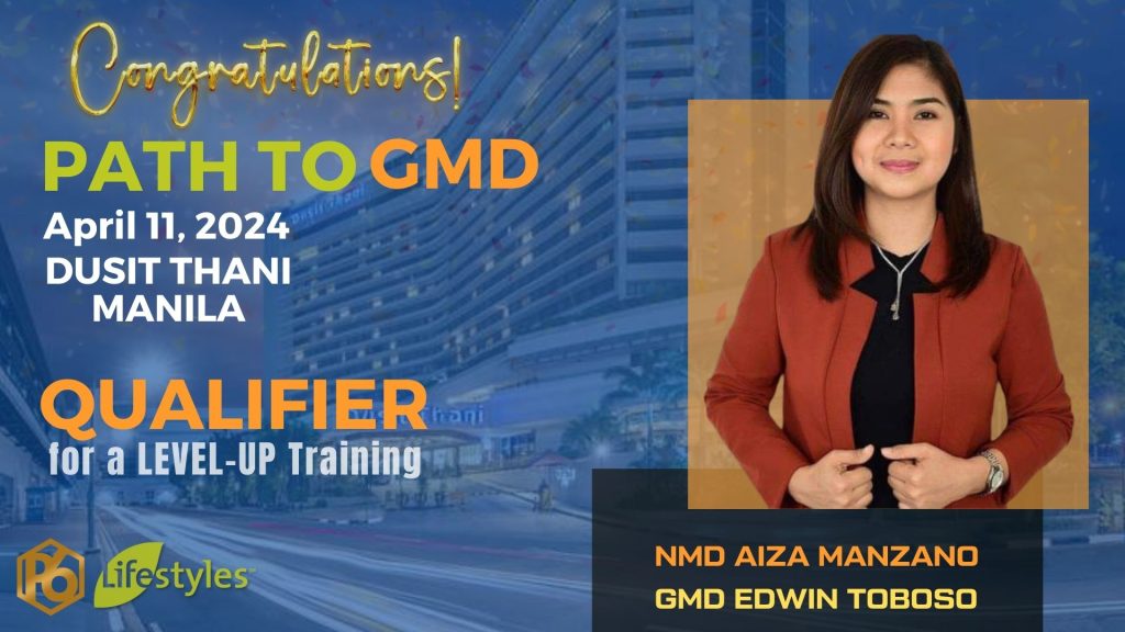 CONGRATULATIONS NMD Aiza Manzano for qualifying to PATH TO GMD an ELITE LEADERS’ LEVEL-UP TRAINING at Dusit Thani Manila on April 11, 2024.