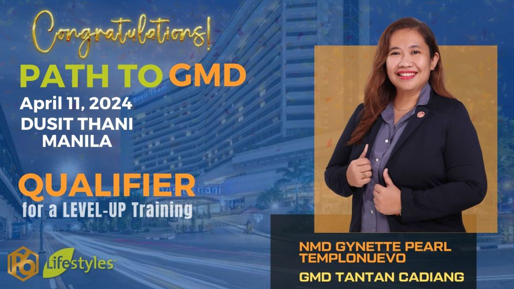 CONGRATULATIONS NMD Gynette Pearl Templonuevo for qualifying to PATH TO GMD an ELITE LEADERS’ LEVEL-UP TRAINING at Dusit Thani Manila on April 11, 2024.